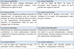 3- Ci-après les types et classifications des sources du droit :