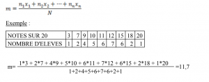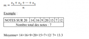 La moyenne d’une série statistique est le quotient de la somme de toutes les valeurs de cette série par l’effetif total.