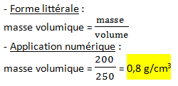 1 – Calculez la masse volumique de la boule. (0,5pt)