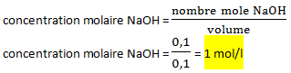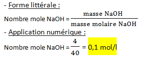 5 – Calculez le nombre de mole de l’hydroxyde de sodium dissout. (0,5pt)