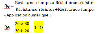 b) Sachant que R = 30Ω. Calculer la résistance équivalente de la lampe et du résistor. (1pt)