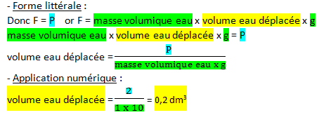 c) Calculez le volume de l’eau déplacée.