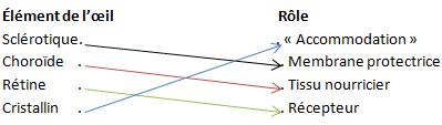 1.2. L’œil est l’organe de la vue. Recopier puis relier par une flèche chaque élément constitutif de l’œil à leur rôle respectif.