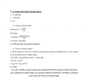 I – NAIVOKELY a versé auprès de la Banque Malagasy (BM) la somme de 16.000.000 Ariary. Il espère que ce placement lui rapportera 7.639.200 Ariary d’intérêts si le taux prévu est de 5% l’an.