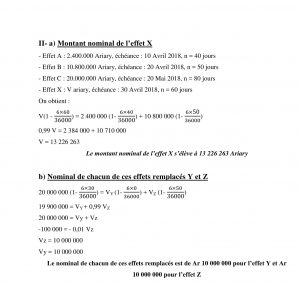 b) Le 20 Avril 2018, Monsieur CLOCLO décide de remplacer à échéance moyenne deux effets Y et Z respectivement au 20 Avril 2018 et au 09 Juin 2018 par l’effet unique C de 20.000.000 Arary.