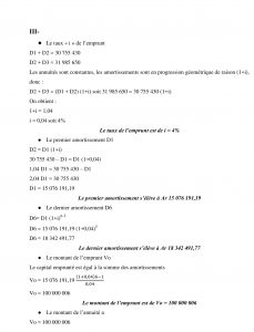 III – DEBABE a emprunté le 1er Janvier 2018 un certain capital auprès de MPANANA qu’il doit rembourser en 6 annuités constantes, la première annuité étant payable le 31 Décembre 2018, la sixième le 31 Décembre 2023,