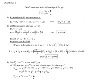 Soit (Un) une suite arithmétique de premier terme Uo = 1 et de raison r = -2.