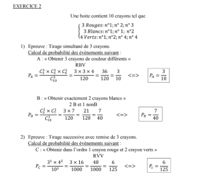 1) Un enfant prend, au hasard et d’un seul coup, 3 crayons de la boîte.