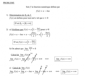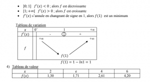 Soit f la fonction numérique d’une variable réelle x définie par : f (x) = x — lnx où ln désigne la fonction logarithme népérien.