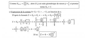 c-Calculer en fonction de n la somme Sn = Uo + U1 + Un (0,75pt)