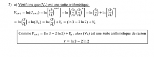 2- a-Vérifier que (Vn) est une suite arithmétique dont on précisera la raison. (1pt)
