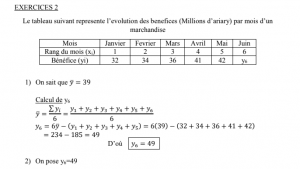 Le tableau suivant représente l’évolution des bénéfices par mois d’un marchand (y) (en millions d’Ariary) où y6 est un nombre entier naturel.