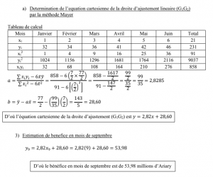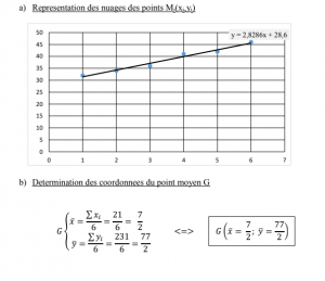 c- Ecrire l’équation cartésienne de la droite d’ajustement linéaire (G1 G2) par la méthode de Mayer. (1pt)