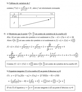 b- Ecrire l’équation de la tangente (T) à la courbe (C) au point d’abscisse xo = 0.