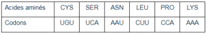 a) A l’aide de l’extrait du code génétique, rechercher la séquence des acides aminés traduite à partir de cet ARNm.